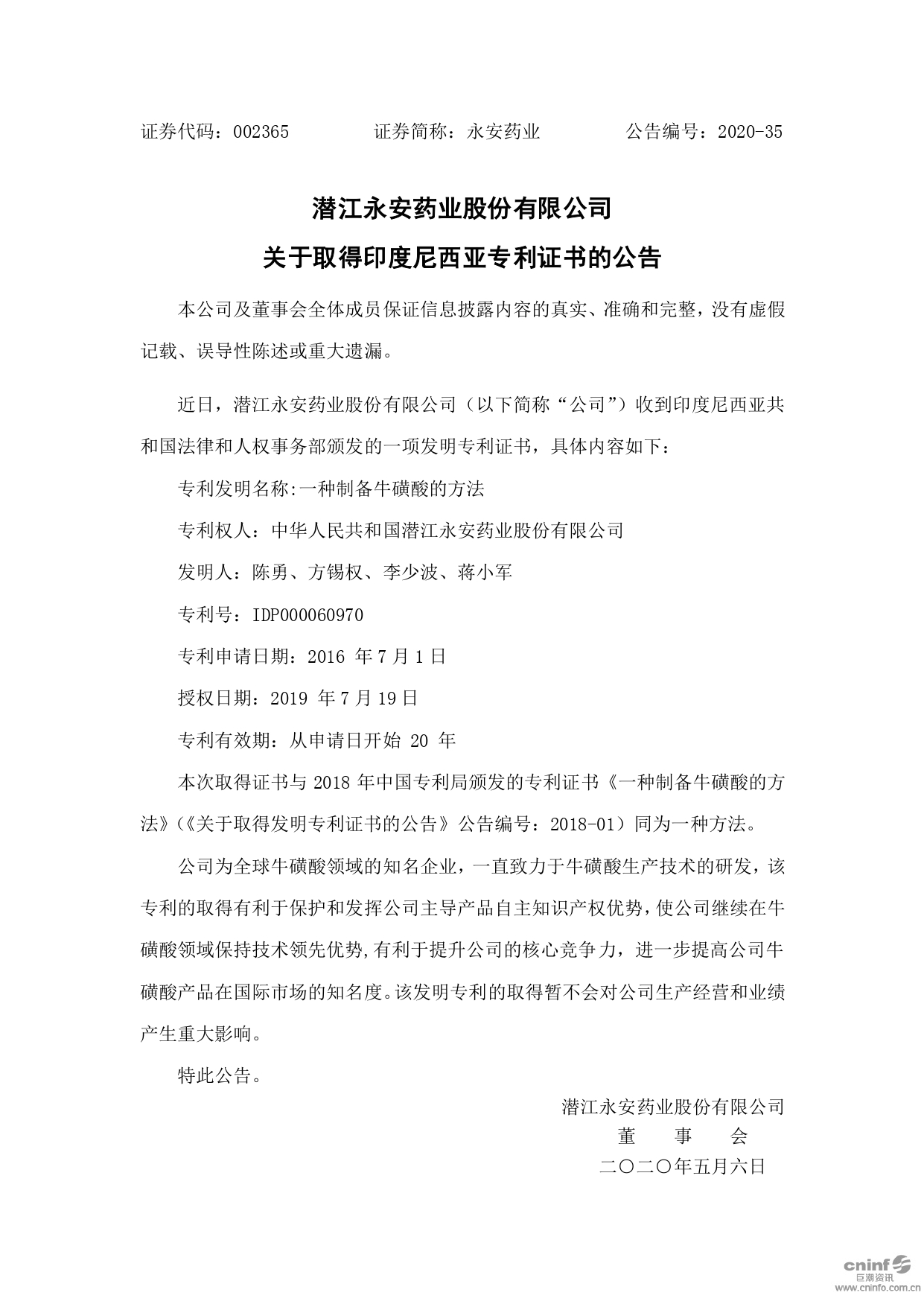 潛江永安藥業(yè)股份有限公司