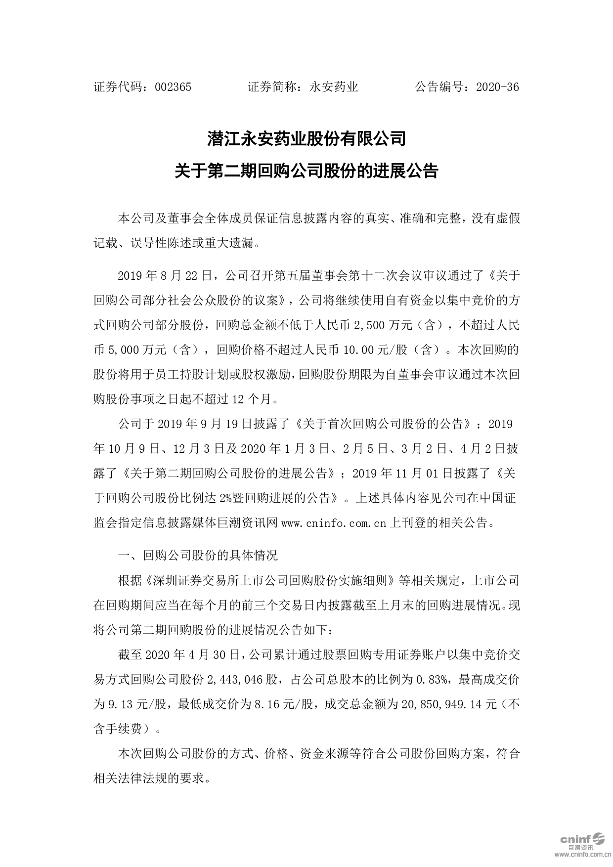 關(guān)于第二期回購公司股份的進展公告