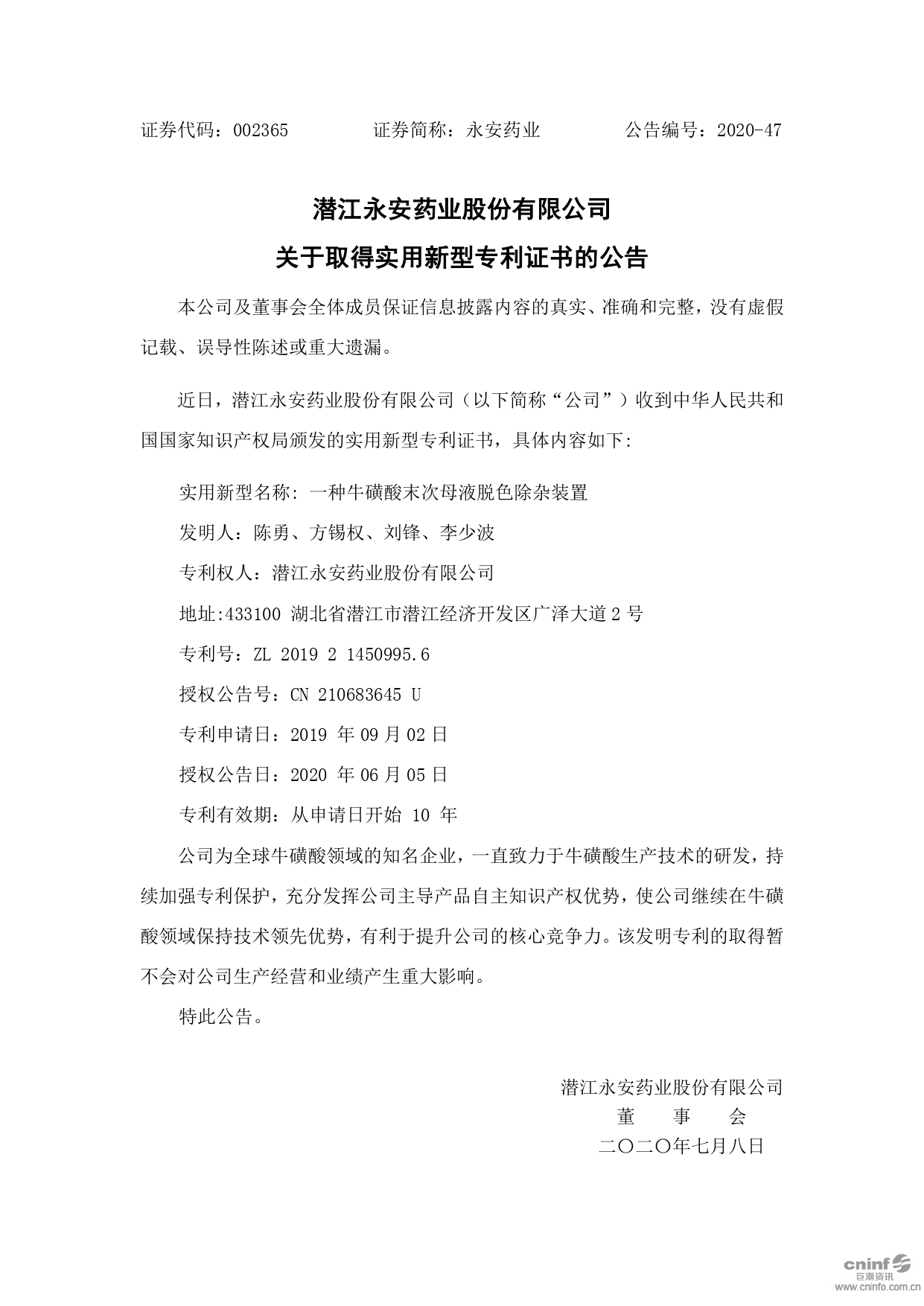 關(guān)于取得實(shí)用新型專利證書的公告