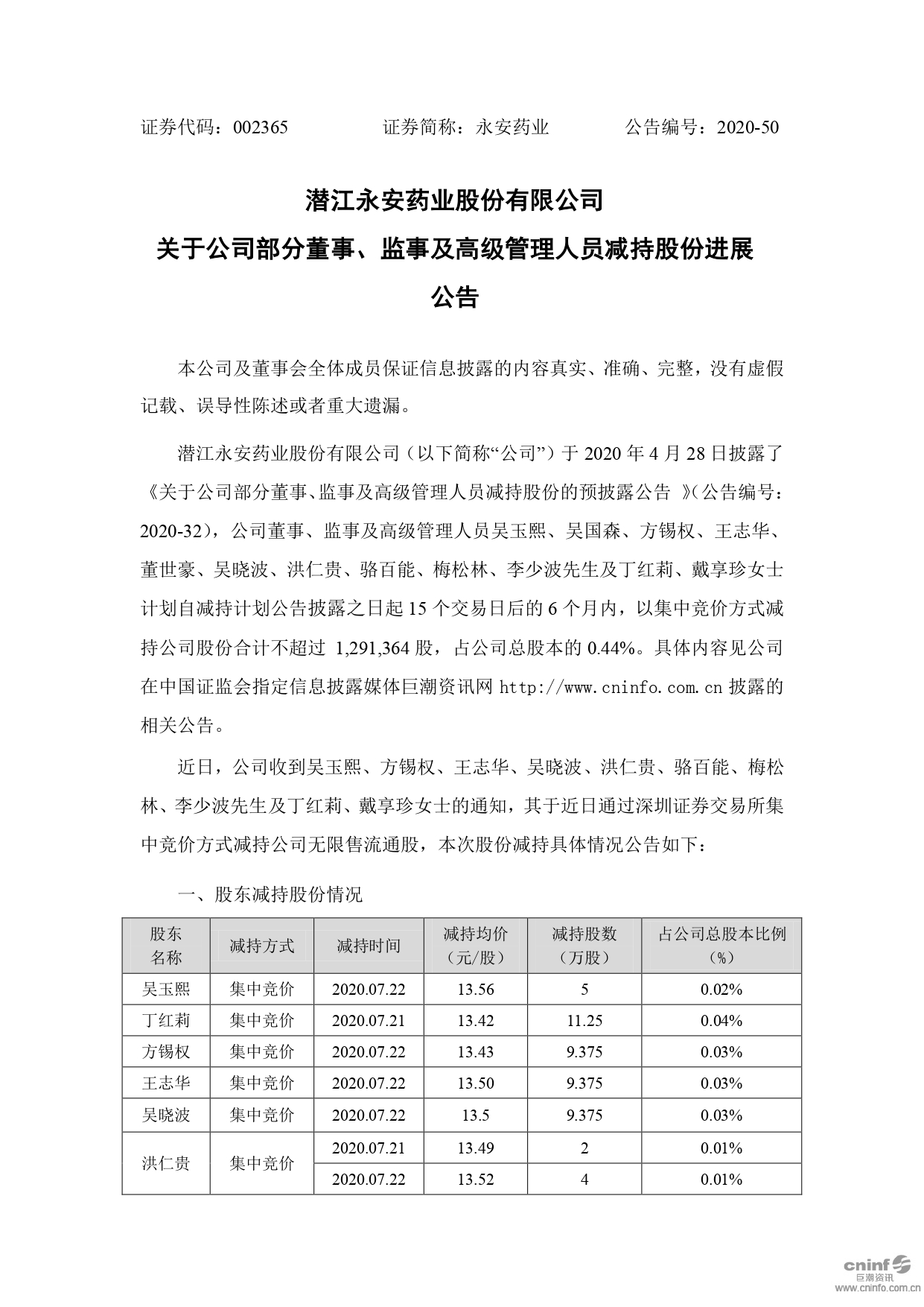 關(guān)于公司部分董事、監(jiān)事及高級管理人員減持股份進展公告
