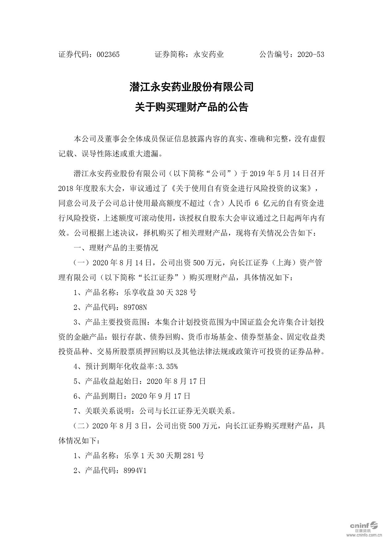 潛江永安藥業(yè)股份有限公司