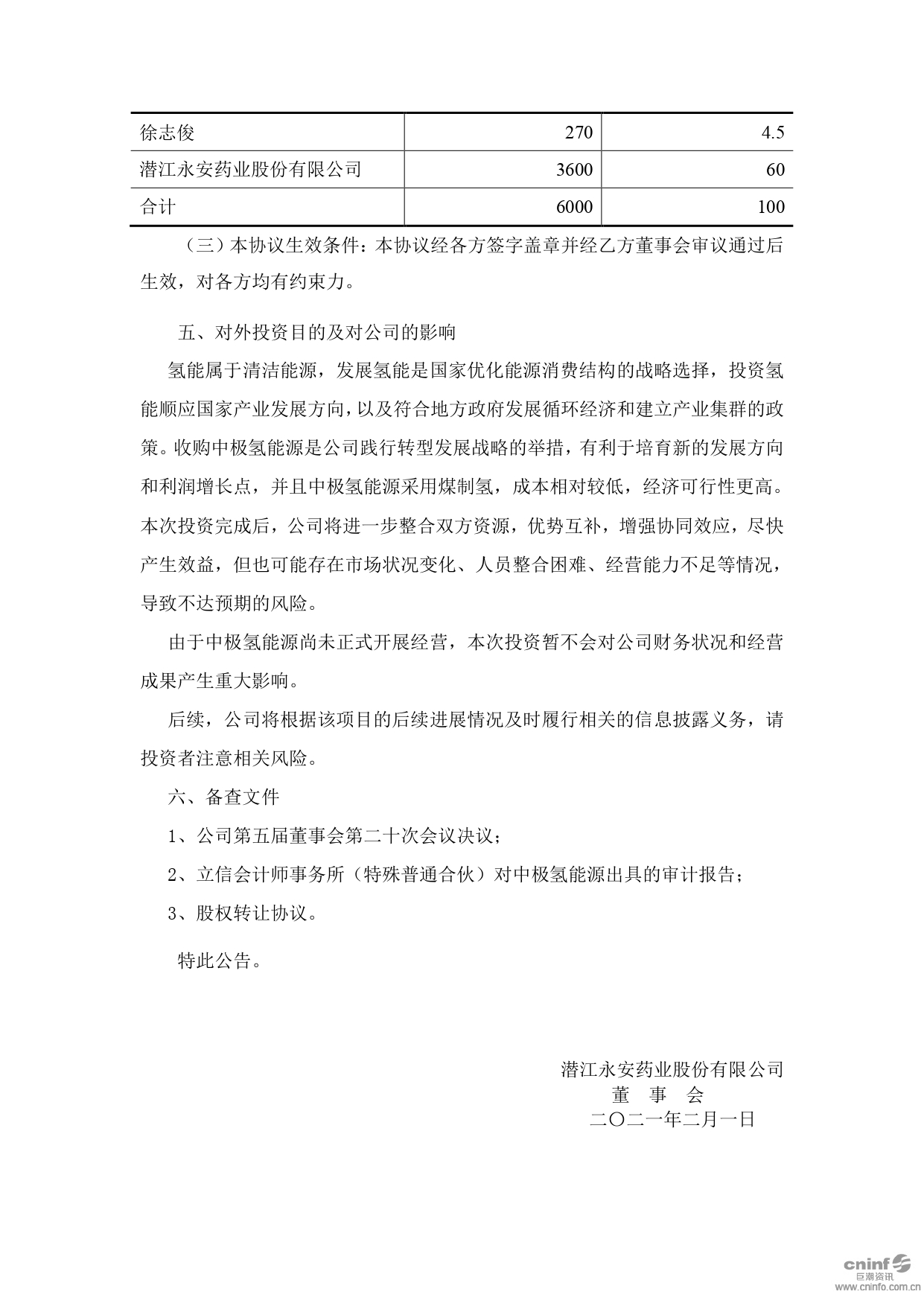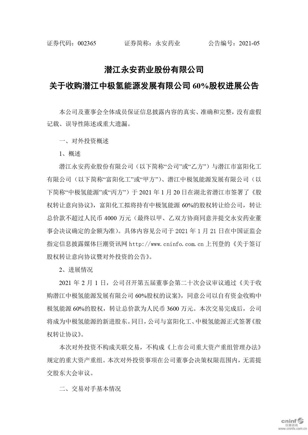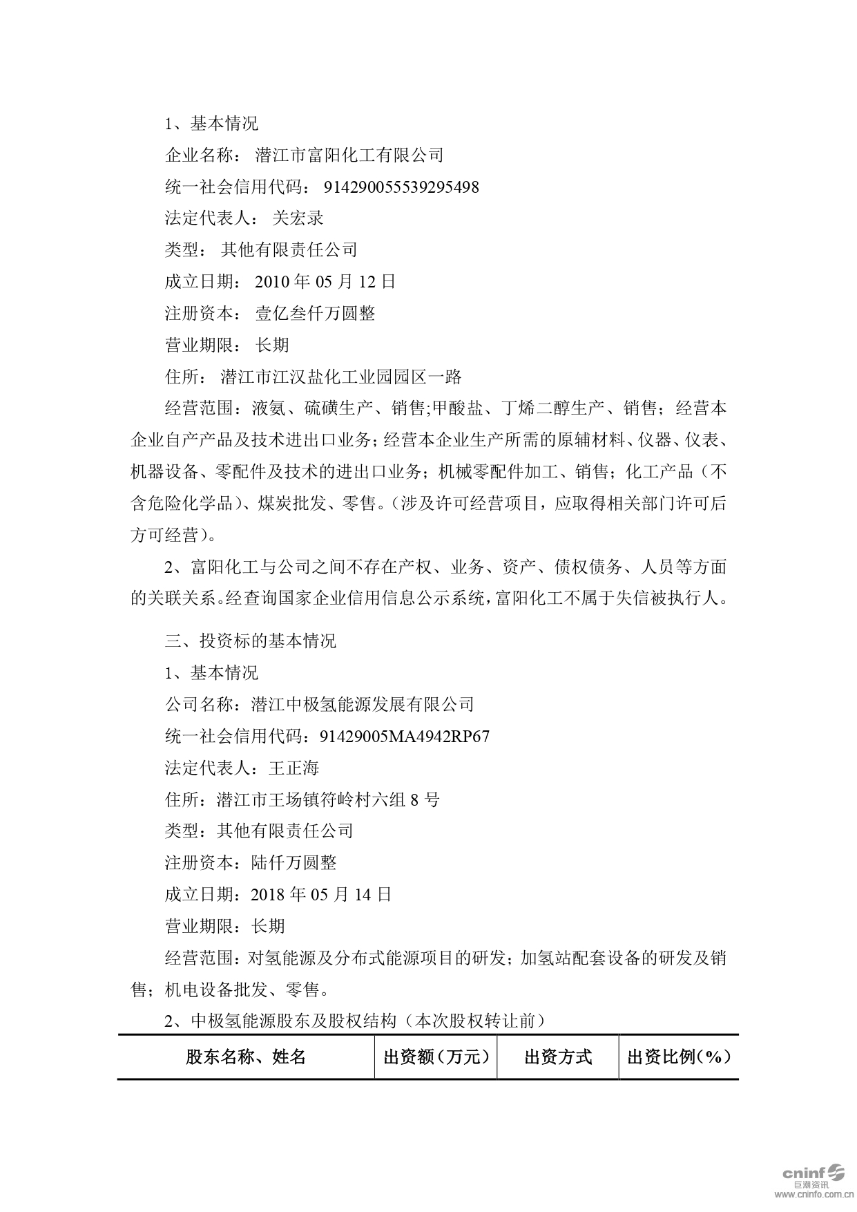 關(guān)于收購(gòu)潛江中極氫能源發(fā)展有限公司60%股權(quán)進(jìn)展公告