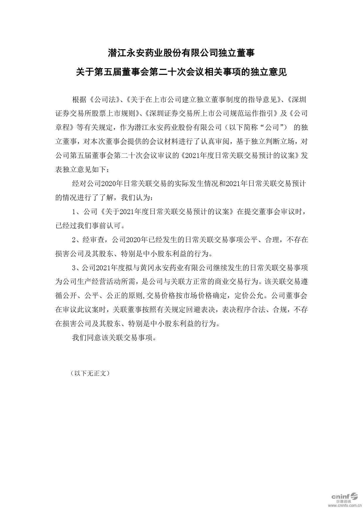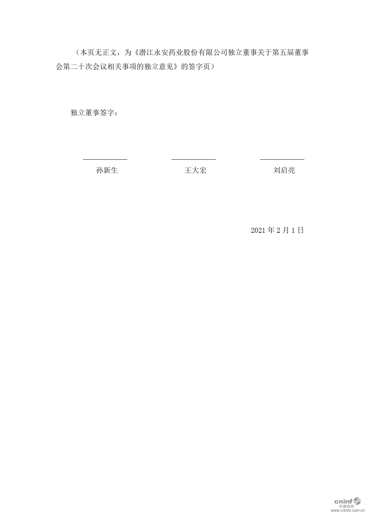 獨(dú)立董事關(guān)于第五屆董事會第二十次會議相關(guān)事項(xiàng)的獨(dú)立意見