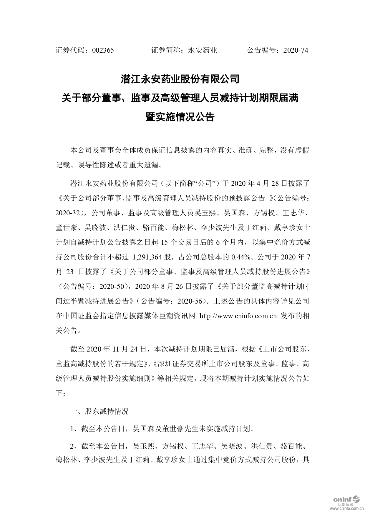 關(guān)于部分董事、監(jiān)事及高級管理人員減持計劃期限屆滿暨實施情況公告