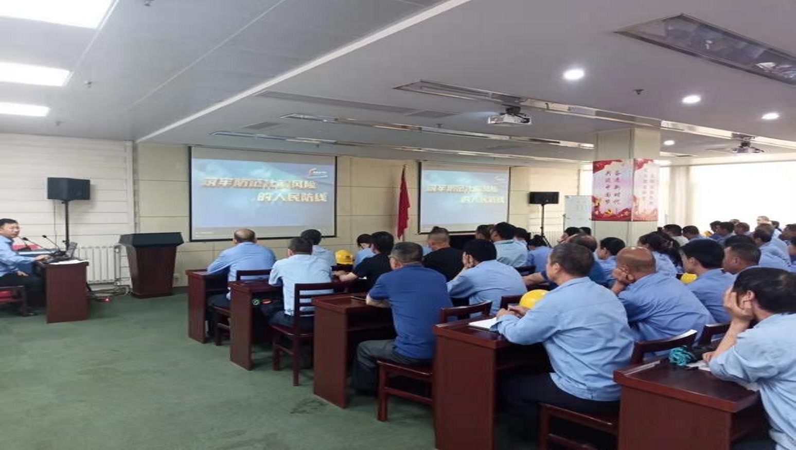 為在公司范圍內(nèi)營(yíng)造“安全生產(chǎn)月”活動(dòng)的良好氛圍,我司定制了“人人講安全,個(gè)個(gè)會(huì)應(yīng)急”主題條幅,懸掛在醒目位置,并在電子顯示屏上滾動(dòng)播放宣傳主題,普及宣傳安全生產(chǎn)月的重要指示精神及相關(guān)政策要求。